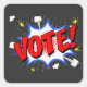Retro Vote Get Out the Vote and 70's Cartoon Square Sticker - Our new vote sticker is reminiscent of the 70's superheroes. Just Vote! Now show the world that you intend to vote in the 2020 election and beyond. Encourage voting to others, whether they are Democrat or Republican. Please celebrate democracy and vote! Love the 70's and ready to vote? This cool and retro vote sticker gives a vintage 60's and seventies vibe. It's a voting pin with a retro cartoon superhero design, a retro vote sticker that's really hip. What's your superpower? Voting in the 2020 election!