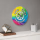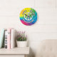 Retro college dorm room wall clocks with cool peace sign symbol and colourful wild background on the clock face in this sixties or seventies era decorative wall decor clock design for your kitchen or any room in your house you want to add some colourful decor and character.
