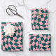 Retro Warped Jungle Green Pink Checks Chequered Wrapping Paper Sheet
