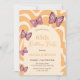 Retro Wave Butterfly Peach Orange Birthday Invitation