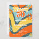 Retro inspired Groovy 50th birthday invitation with retro waves pattern, daisies and boho fonts and colours.