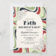 Retro flower with arch frame on green, red and black wavy lines background birthday invitation.