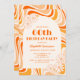 Retro flower with arch frame on orange and peach wavy lines background birthday invitation.