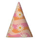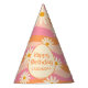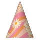 These groovy colourful party hats feature an elegant daisy flower pattern on a retro wave backdrop. The default text is "happy birthday" with your names in red lettering. All text fields are editable for ultimate customisation!