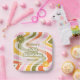 Retro Wave Groovy Flower Green 40th Birthday Paper Plate