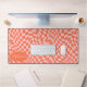 Elevate your workspace with this Modern Wavy Chequerboard Pattern Personalised Desk Mat. This mat presents a playful twist on a classic chequerboard, brought to life with an undulating wave pattern in shades of orange and pink. The personalised feature offers an extra touch of individuality, making your workspace truly your own. Its design effortlessly combines a modern aesthetic with a touch of whimsy, transforming any desk into a statement piece. Ideal for personal use or as a unique gift, this desk mat is an excellent fusion of fun and functionality. Personalise this custom design with your own name.