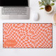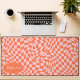 Retro Wave: Modern Wavy Orange Pink Chequerboard Desk Mat