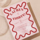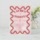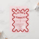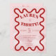 Red and pink wavy border 30th birthday party invitation. Pair with our matching birthday dinner party menus.