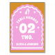 Our minimal, bold retro style wedding table number is perfect for the trendy couple who loves standing out and making a bold statement. Our design features a bold bright pink and yellow colour combo. A simple abstract wavy arch shape creates a bold look with the table number displayed boldly in white large font. Customise with a fun fact about the couple on each of the table numbers. The reverse side features a full photo layout with a customisable QR code to link guests to a website etc