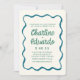 Retro Wavy Blue and Green Handwriting Wedding Invitation