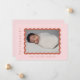 A modern birth announcement for your little girl featuring your favourite photo of your little one in a terracotta wavy scallop frame on a blush pink background and terracotta text. Add a personal message to the reverse.