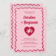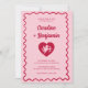 Retro Wavy Frame Red Pink Cupid Heart Wedding Invitation