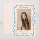 Celebrate your graduate with playful vintage charm using these Retro Wavy Hand Drawn Bow Grad Photo Graduation Announcement Photo Cards, designed with a stylish retro-inspired aesthetic and modern personalization. The front features a wavy retro frame paired with a signature hand-drawn bow detail, creating a fun yet elegant layout that highlights your graduate’s photo at the center. Bold graduation text and customizable areas allow you to personalize with the grad’s name, school, and class year, making it meaningful to share with friends and family. The clean flat announcement format keeps the focus on the photo and artwork, blending nostalgic retro vibes with a fresh, modern graduation style. Perfect for high school seniors, college graduates, and university celebrations, this announcement adds a unique editorial touch to any graduation milestone. Design and hand-drawn artwork by © Moodthology Papery.