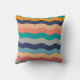 Retro Wavy Lines - Blue Turquoise Orange Cushion