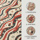 This retro-inspired 2D pattern features wavy red, black, and cream stripes intertwined with scattered stars, dots, and circles in various sizes, capturing the essence of mid-century cosmic design. The flowing, dynamic stripes and playful shapes create a vibrant, nostalgic atmosphere, perfect for those who love vintage aesthetics with a futuristic twist. Ideal for textiles, home decor, or accessories, this pattern adds a stylish, space-age vibe to any project, bringing the charm of the atomic age into modern design.