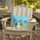 This Retro Wedding Couple Outdoor Pillow will have you hearing wedding bells. The 1960's style, minimalist art design features a bride and groom on their wedding day. The happy couple looks good enough to be standing atop a wedding cake. But they aren't. They're standing on lush, green grass. The debonair Mr. is wearing a classic, black tuxedo with black bow tie. Down, ladies! He's taken! He is holding the hand of his beautiful Mrs., who looks positively radiant in her tea length, white gown with form fitting waist and flared skirt. She truly looks like a princess with her tiara and gauzy, white wedding veil resting on her pretty blonde head. Beside them, a path in the grass leads to the world's most charming chapel. The quaint, teal and turquoise church is the perfect setting for saying, "I do!" Yes, here is the church. Here is the steeple. We can only assume that, behind those bright red, double doors is a roomful of people just waiting to share in this couple's happiness. The picturesque setting also includes four, stylistic, cartoon trees in shades of blue. It's a beautiful day for a wedding, as we can see from the flawless aqua sky. The only thing missing from this mid century modern design is the rice, and we can assume that will be forthcoming. The opposite side of this pillow is solid aqua and can be personalised.