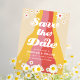 The Retro Wedding Save The Date Postcard is a vibrant celebration of love, featuring bold colours and playful floral designs that capture the groovy essence of vintage style. With its unique typography and retro flair, this postcard is perfect for announcing your special day. It is easily customisable to reflect your personality, and I’m here to help if you need any assistance!