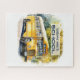 A jigsaw puzzle with an image of a retro school bus and text: Welcome Back To School.