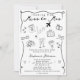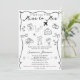 Retro Funky Whimsical Hand Drawn Miss to Mrs Bridal Shower Invitation - A travel themed bridal shower starts with an invite that inspires wanderlust. With quirky, fun and cute hand drawn style illustrations featuring an aeroplane, passport, engagement rings, bouquet of flowers clinking champagne glasses, a cute luggage with hearts, camera, and sunglasses all adorned by a whimsical squiggle frame. Travelling from Miss to Mrs is written in vintage inspired hand lettered font. Edit this bridal shower template with your own event details. All text is customisable. On the back you will find even more fun illustrations including a globe, map and luggage. Available in both print and eco-friendly digital download, perfect for sending via text, email or social media.