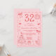 Retro Whimsical Quirky Red Pink 32nd Birthday Invitation
