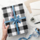Retro White Black Christmas New Year Tartan Plaid Wrapping Paper
