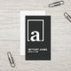 A retro white box design accentuates the left wall of the card, it houses your monogram initial. Just below this are your prestigious name and job title.