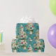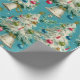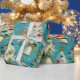 This wrapping paper features a whimsical and retro Christmas theme. This design showcases a repeating pattern of fluffy white Christmas trees decorated with colourful vintage ornaments and beaded garlands. This design is set against a vibrant blue background. This charming paper is perfect for anyone who loves the nostalgic feel of a mid-century holiday.