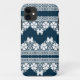 Retro white lace with butterflies on a dark blue b Case-Mate iPhone case