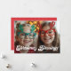 Retro White Script Christmas Blessings One Photo Holiday Card