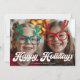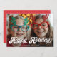 Retro White Script Happy Holidays One Photo Holiday Card