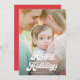 Retro White Script Happy Holidays One Photo Holiday Card