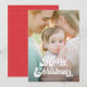 Retro White Script Merry Christmas One Photo Holiday Card