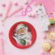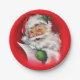 These Christmas plates are the perfect addition to your next holiday party.  A smiling Santa Claus, in bright red and white, has a gleam in his eye and winks while checking over his naughty and nice list.