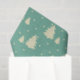 Retro, mid-century vintage pattern of winter tree silhouettes and snow dots on pastel turquoise background