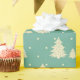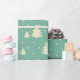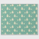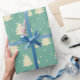 Retro, mid-century vintage pattern of winter tree silhouettes and snow dots on pastel turquoise background