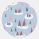 This vintage looking design will look perfect on your packages or as envelope labels to seal your written correspondence.  Modern trees on a snowy mound look modern yet retro...a mid-century modern vibe.  Trees are pink, blue and green against a serene blue background.  Coordinating items available in my store.