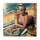 Retro Woman at Beach reading a Fashion Magazine Ceramic Tile
