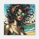 Retro Woman on Beach Comic Style Pop Art Magnet
