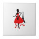 Retro woman red black silhouette with Eiffel Tower Tile