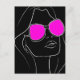 Black background with a woman's face wearing hot pink sunglasses using white line art retro design. Send a little love to any woman/girl in your life. Celebrate International Women's Day. Great motivational, inspirational gift to send in the post to a friend, graduate, loved one or work colleague or for a cool piece of wall art.
