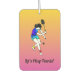 Cool retro women's tennis player design on a handy car air freshener! Great small gift for teammates and coaches, or as a stocking stuffer for anyone who loves racquet sports. Lovely pink and yellow background gradient with your custom text at the bottom.