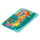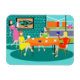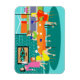 This Retro Women's Weekly Card Game Flexi Magnet features a cartoon drawing of four mid century modern women at a hen party. They are socialising in a stylish dining room. On a turquoise and teal brick wall, there is a Mid Century Modern Globe Art Stretched Canvas Print, which is available from StrangeLittleOnion's Zazzle store. My, they have good taste! Through sliding glass doors, we can see the lush, green lawns of suburbia. Across the street, there is a sleek orange house with a pink and white car parked in the carport. Back in the dining room, three women are seated at a round table with an orange tablecloth. There is a redhead in a yellow dress, a brunette in a green dress, and a blonde in a red dress. They are holding cards in their hands. Four teacups are on the table just waiting to be filled by the raven haired hostess in a pink wiggle dress. She is carrying a tray with a tea carafe perched on top of it. All of the women are having a wonderful time, but they should probably keep an eye on the blonde. If that card she's holding behind her back is any indication, she cheats!