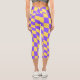 Retro Y2K Chequerboard Capri Leggings , Funky Trendy purple & yellow Chequerboard Leggings
