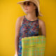 Retro Yellow and Blue Douglas Tartan, custom Beach Towel