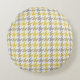 Retro yellow and grey houndstooth plaid pattern round cushion