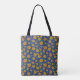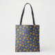 Retro Yellow Flowers Pattern Monogram Navy Tote Bag