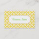 A cheerful yellow and white pattern decorates this stylish business card. Customise this business card to suit your needs. Add or delete information, change the font style, font size, etc...The design is from original art. Use this stylish business card for a spa, salon, small business, home decor, event planner, child care, etc...