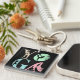 Retro Yoga Typography with Silhouettes of Poses Key Ring