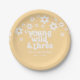 Young Wild and Three! Retro inspired 3rd birthday party plates with 70's style daisies and boho fonts and colours.