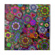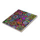 A tile with a lively and colourful design of peace signs, paisley, ankhs, hearts, and flowers. A far-out flash back to the 1960's.